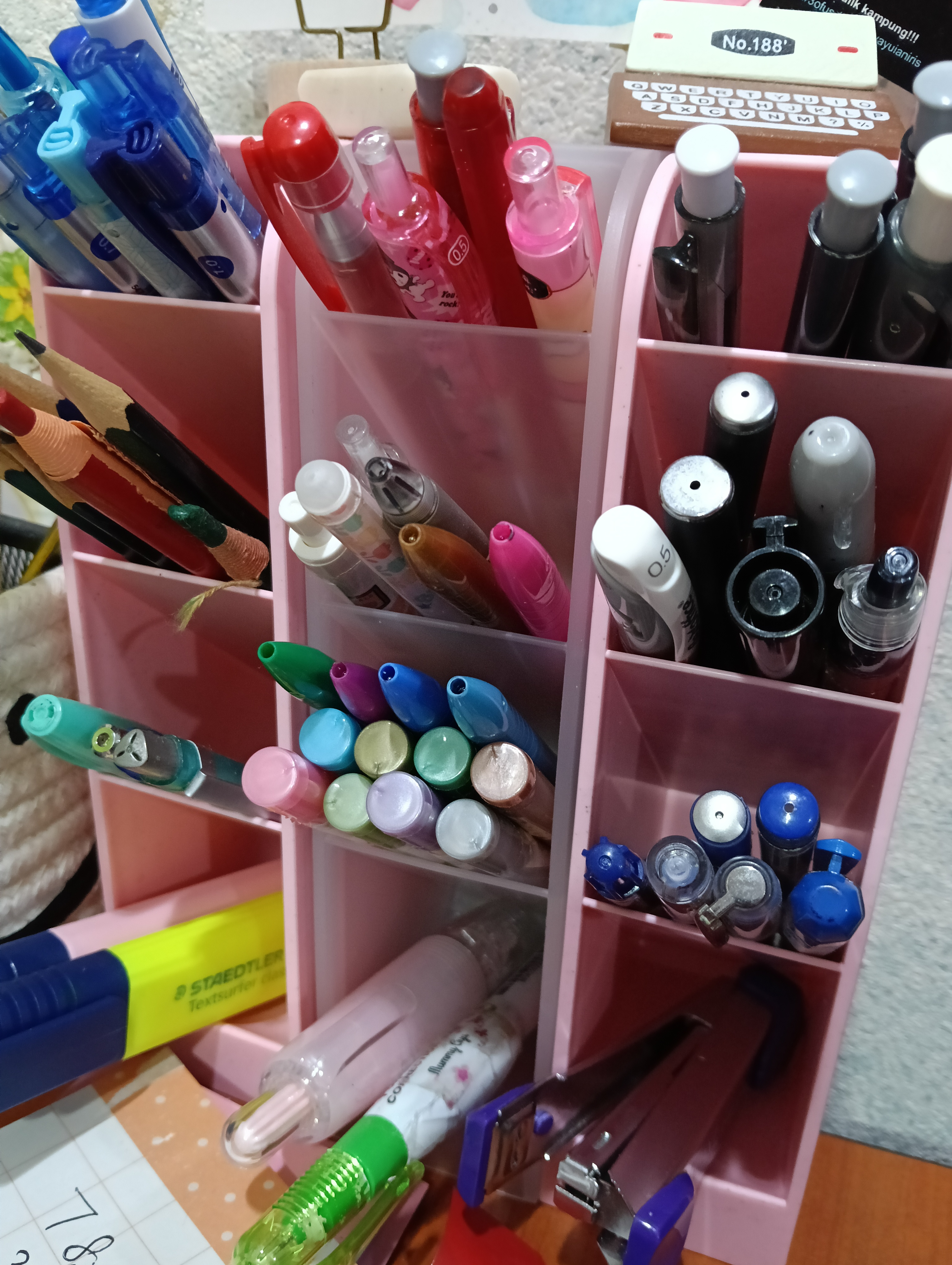 ReplyDeletetempat letak pen tu dah macma kedai buku je...hihihi